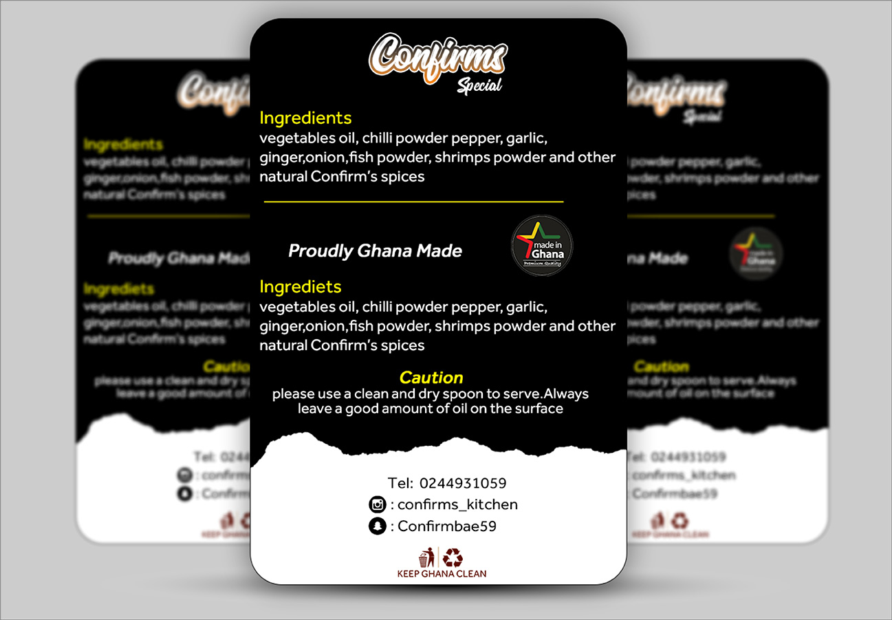 Labeling has been considered as one of the greatest branding identity, that sells business and promotes business pressence, Eyenit deisgned a great label that defines the business purpose of Confirms Kitchen.