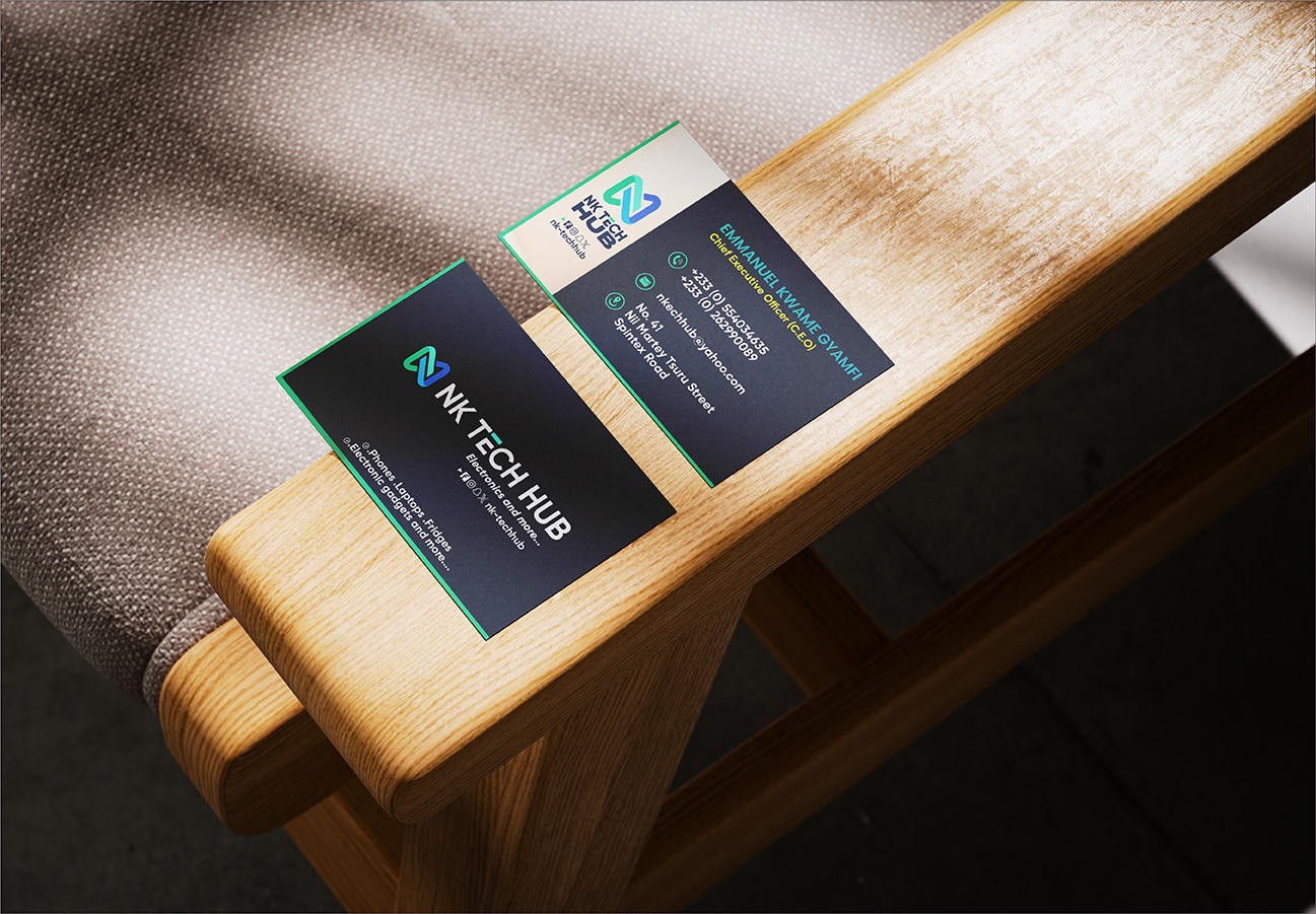A creative busines card designed for NK Tech Hub to promte their business in the competetive market.